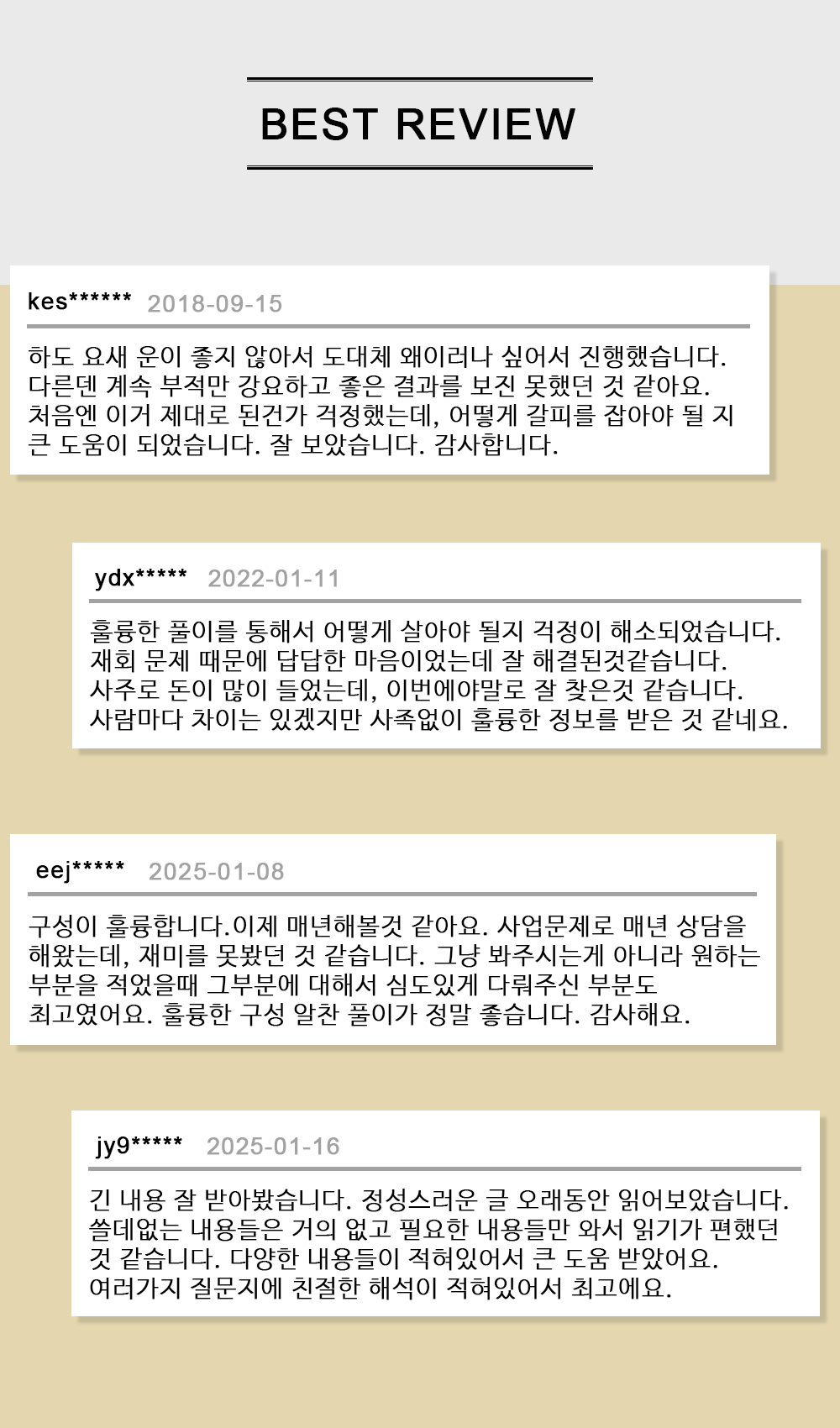 - 과거 경험과 사주 풀이 결과를 비교해 보세요.